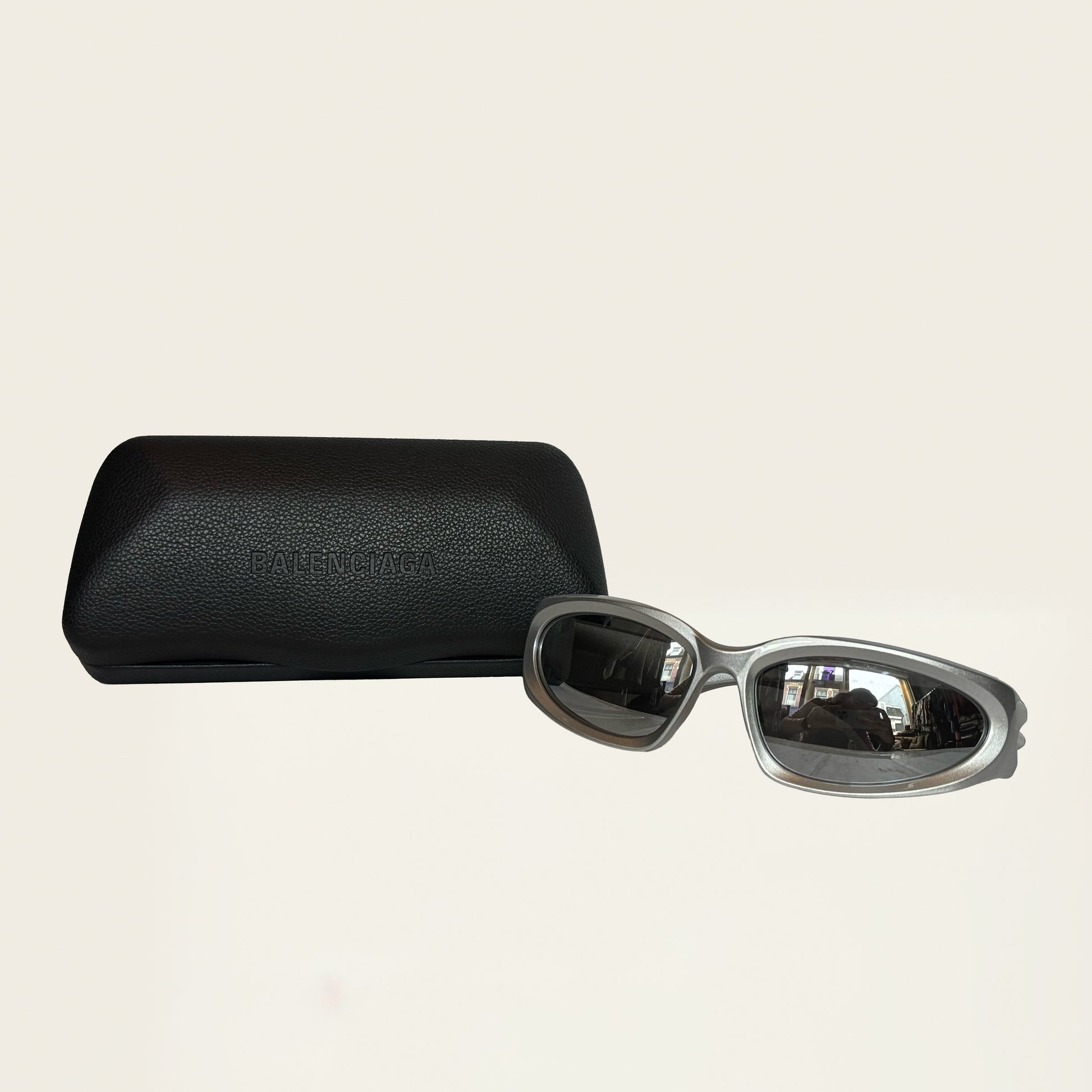 Balenciaga BB0157S Swift Oval sunglasses in silver bio-based injected nylon with mirror silver lenses.